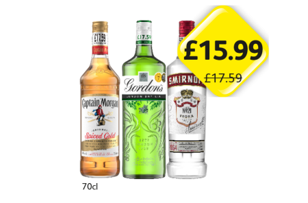 Captain Morgan Spiced Gold, Gordon's, Smirnoff - Now Only £15.99 at Londis