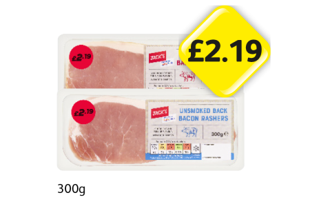 Jack's Back Bacon Rashers Smoked, Unsmoked - Now Only £2.19 at Londis
