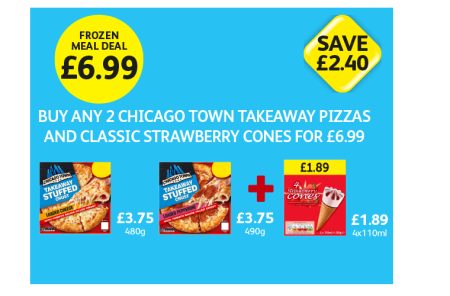 Chicago Town Takeaway Stuffed Pizza Loaded Cheese, Pepperoni, Strawberry Cones - Now Only Buy Any 2 Chicago Town Takeaway Pizzas And Classic Strawberry Cones for £6.99 at Londis