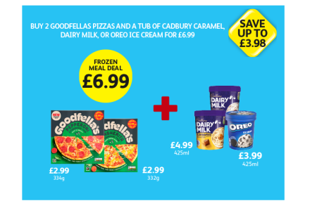 Goodfella's Pepperoni, Margherita, Cadbury Ice Cream Dairy Milk, Caramel, Oreo