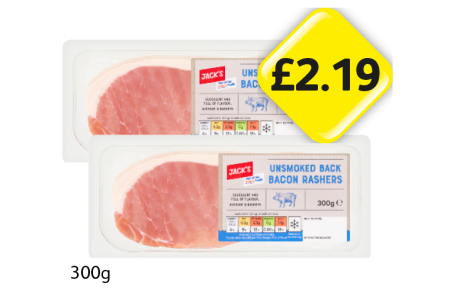 Jack's Smoked Back Bacon Rashers, Unsmoked - Now Only £2.19 at Londis