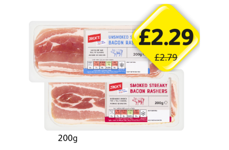 Jack's Smoked Straight Bacon Rashers, Unsmoked - Now Only £2.65 at Londis