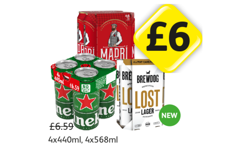 Madri, Heineken, Brewdog Lost Lager - Now Only £6 at Londis