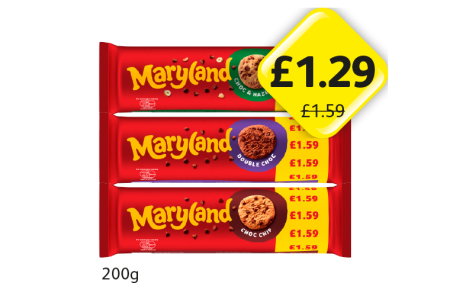 Maryland Choc & Hazelnut, Double Choc, Choc Chip - Now Only £1.29 at Londis