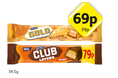 McVities Gold Billions, Club Layers Orange - Now Only 69p at Londis