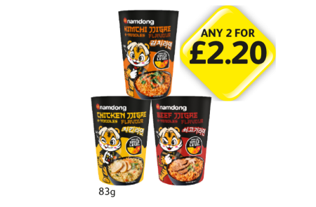Namdong Kimchi Noodles, Chicken, Beef - Any 2 for £2.20 at Londis