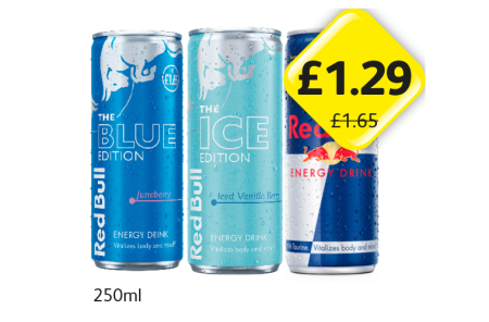 Red Bull Original, Blue Edition, Ice Edition - Now Only £1.29 at Londis