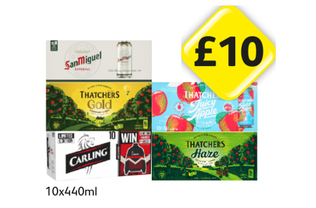 San Miguel, Thatchers Gold, Juicy Apple, Haze, Carling, - Now Only £10 at Londis