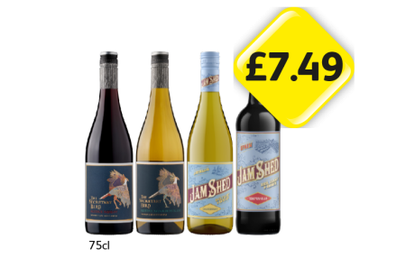 The Secretary Bird Merlot, Sauvignon Blanc, Jam Shed Chardonnay, Tempranillo - Now Only £7.49 at Londis