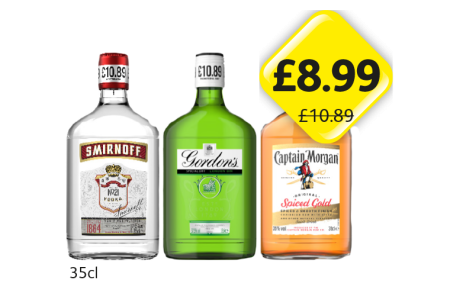 Smirnoff, Gordon's, Captain Morgan Spiced Gold - Now Only £8.99 at Londis